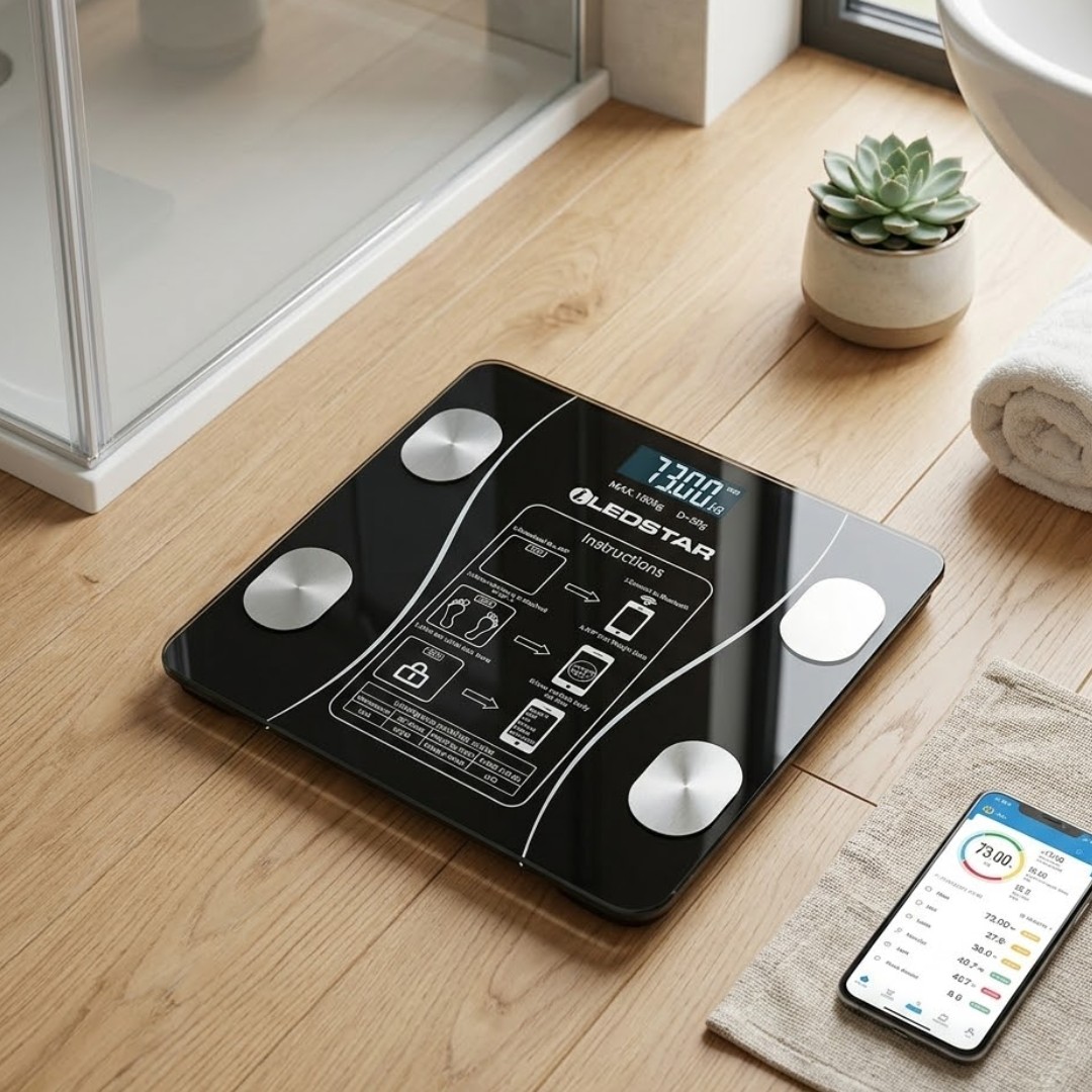 Controla tu peso de forma fácil y precisa con la balanza digital LEDSTAR, ideal para el uso diario en el hogar. Cuenta con pantalla digital clara y fácil de leer, sensores de alta precisión y capacidad máxima de hasta 180 kg. Su superficie de vidrio templado resistente brinda mayor durabilidad y estabilidad al usarla. Además, incorpora encendido automático al pisarla, lo que permite obtener el peso rápidamente sin presionar botones. Su diseño moderno y compacto se adapta perfectamente a cualquier baño o habitación.