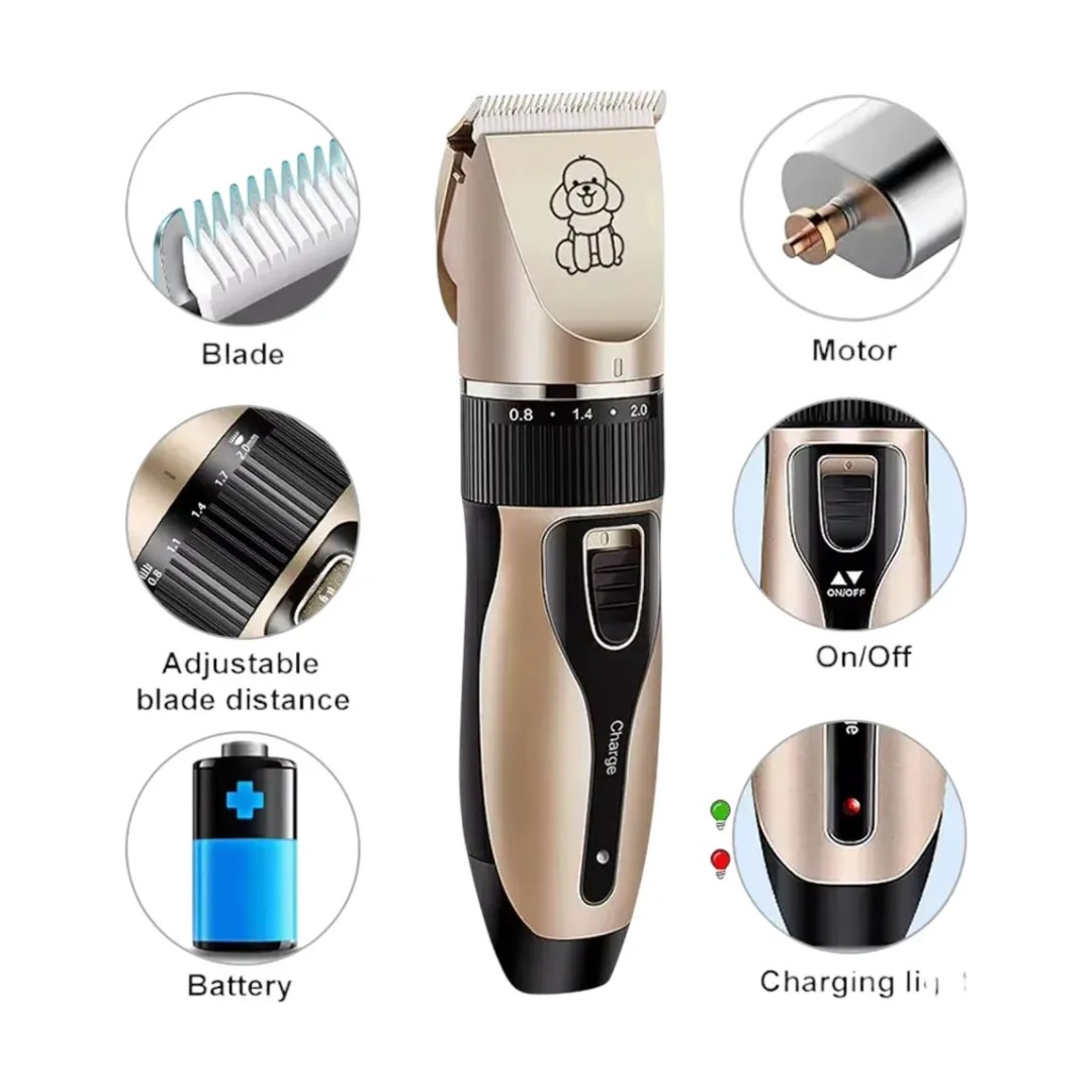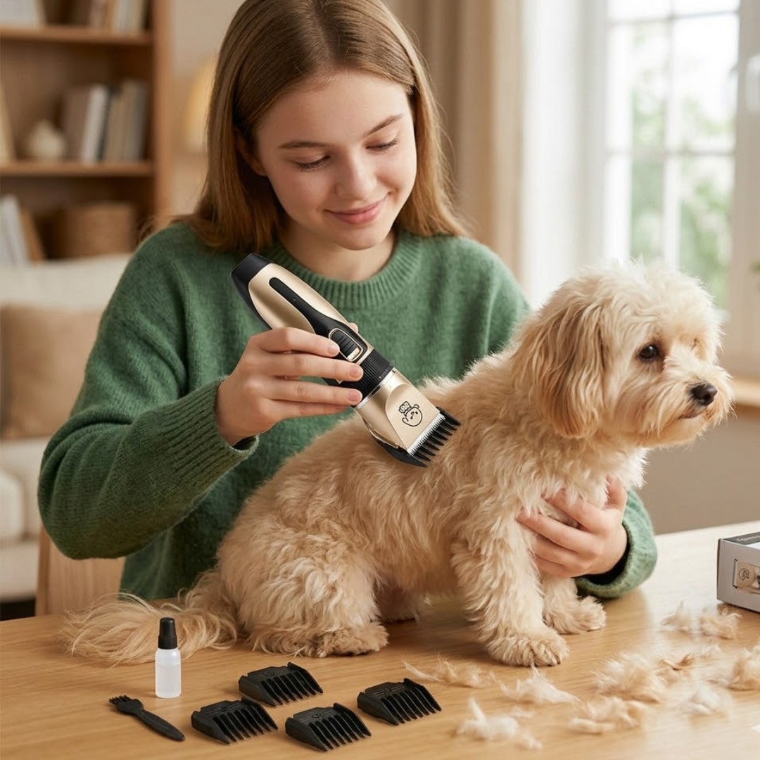 La máquina cortapelo para mascotas es una herramienta práctica para mantener el pelaje de perros y gatos prolijo desde casa. Funciona con alimentación USB e incorpora una batería recargable de 1200 mAh que brinda buena autonomía de uso. Su motor silencioso ayuda a que las mascotas se mantengan más tranquilas durante el corte. Incluye diferentes peines guía y accesorios que permiten elegir el largo del pelaje y lograr un acabado uniforme. Su diseño ergonómico facilita el manejo y permite cortar con mayor precisión, siendo ideal para el cuidado y mantenimiento del pelo de las mascotas.