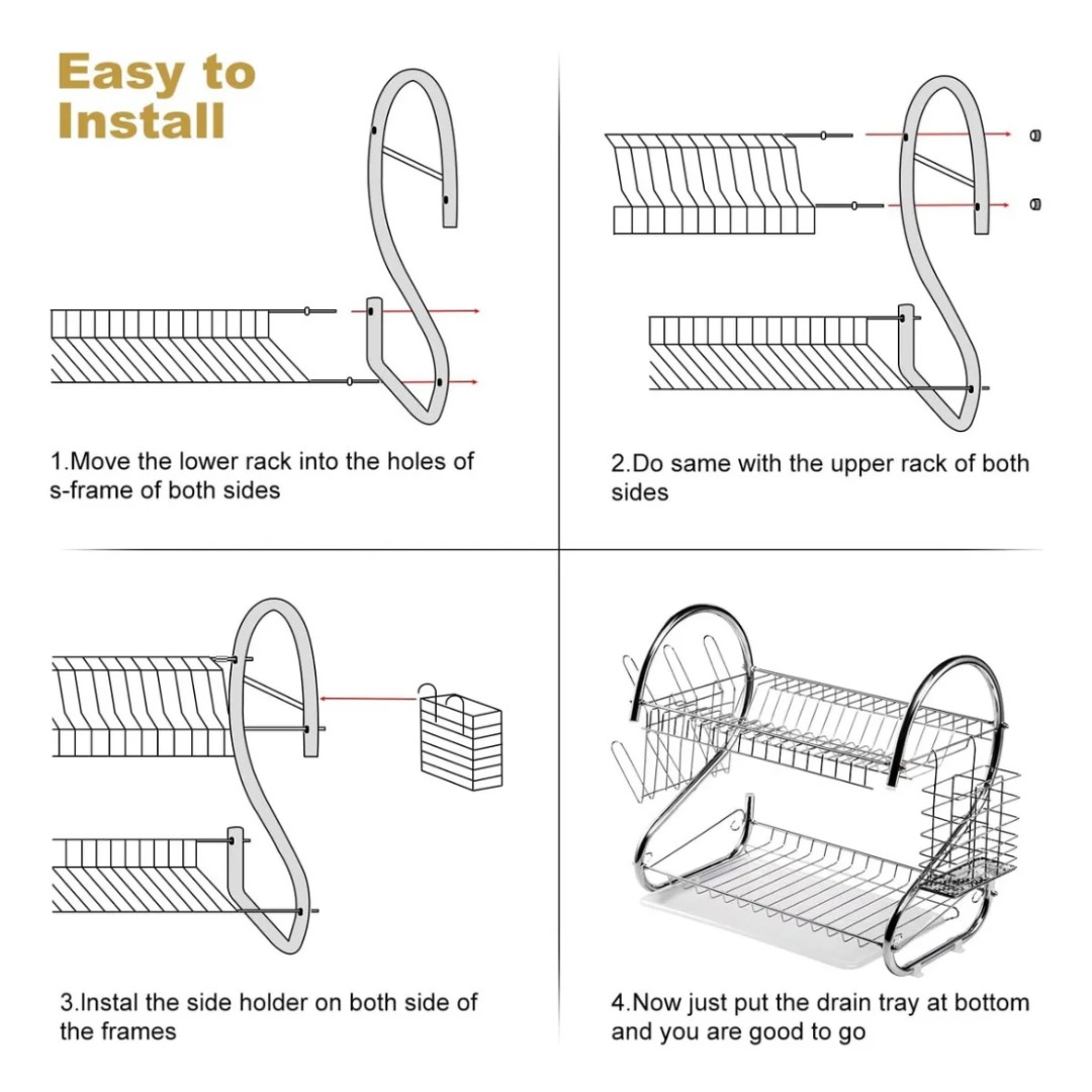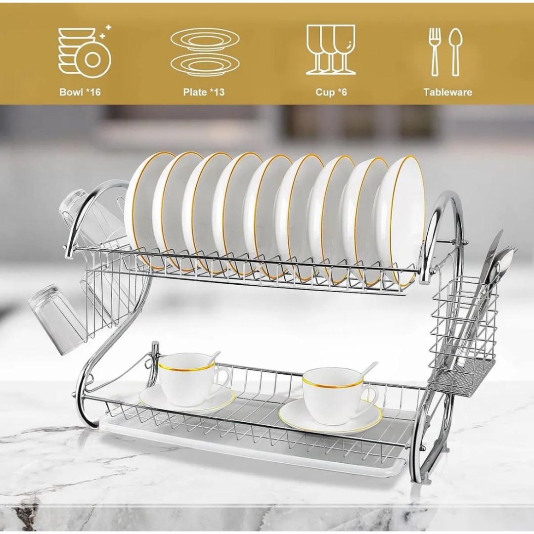 El Porta Platos Escurridor de 2 Niveles es una solución práctica y elegante para mantener la cocina ordenada. Su diseño maximiza el espacio, permitiendo secar y organizar platos, vasos y cubiertos de forma eficiente. Ideal para ahorrar lugar en la encimera y mantener todo en su sitio con estilo.