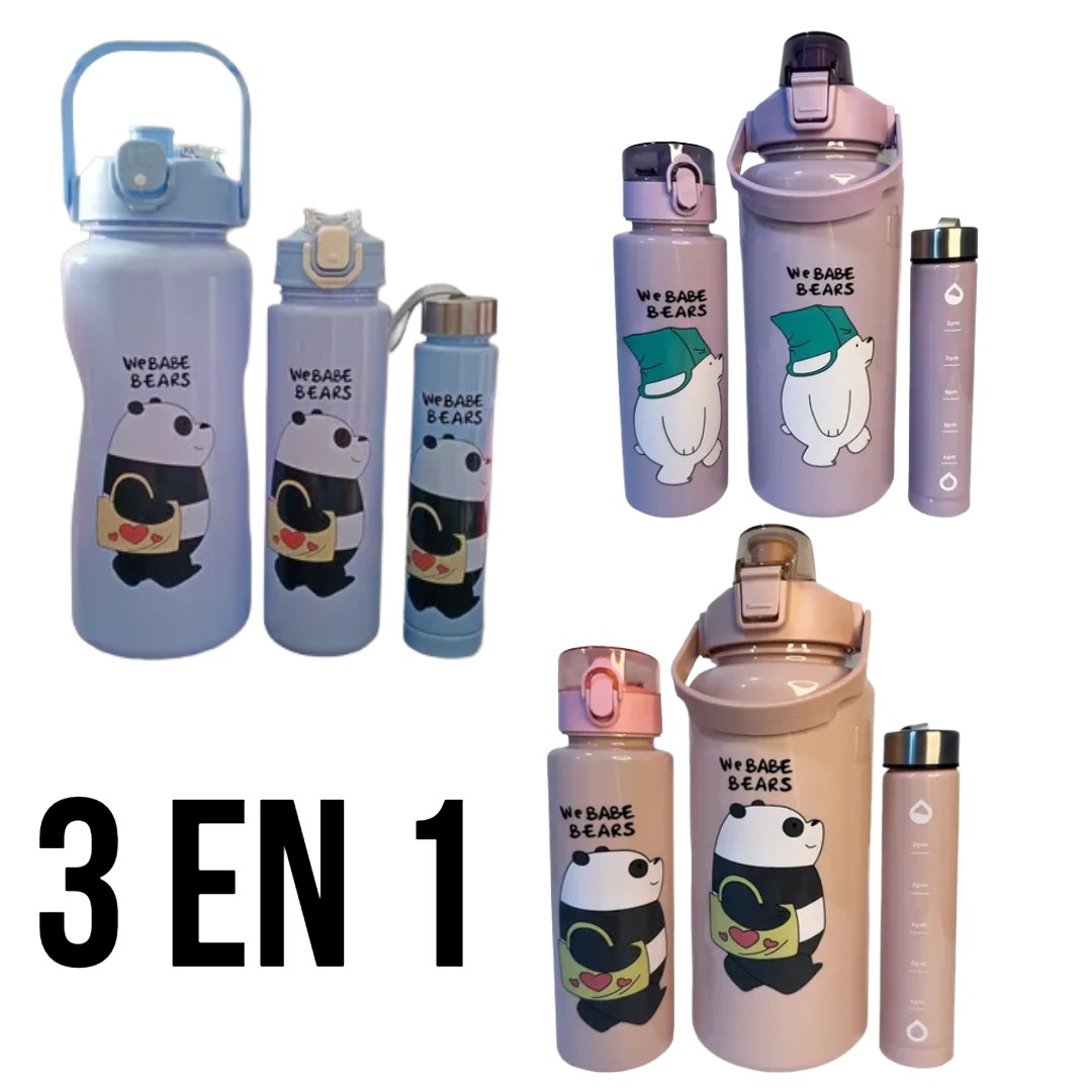 ¡Hidratate con estilo y buena vibra! Este kit de botellas con frases motivacionales es perfecto para acompañarte durante todo el día, ya sea en casa, el trabajo, el gimnasio o tus salidas. Viene en 3 tamaños prácticos: 2L, 900 ml y 300 ml, para que elijas el que mejor se adapta a tu rutina.