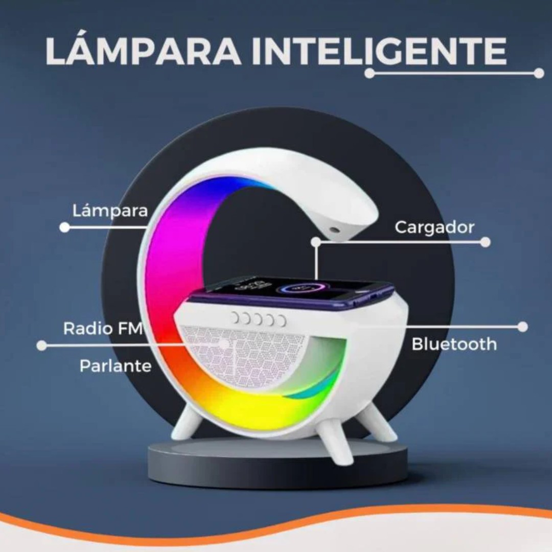 Descubrí la Lámpara G Speaker G63, un dispositivo 5 en 1 que combina practicidad y estilo en un solo producto. Disfrutá de su potente altavoz Bluetooth con luces RGB que llenan tu espacio de música y color. Además, cuenta con cargador inalámbrico de 15W para mantener tu celular siempre listo, reloj y alarma para organizar tu día, y función de veladora para crear un ambiente relajante y acogedor. Ideal para tu dormitorio, oficina o sala, esta lámpara multifuncional transforma cualquier espacio con su diseño moderno y versátil. ¡Un accesorio completo para disfrutar de comodidad, tecnología y bienestar en tu rutina diaria!