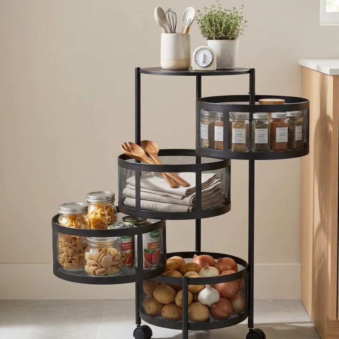 Optimiza tus espacios con este organizador redondo de 5 niveles, ideal para mantener todo en orden de forma práctica y accesible. Su diseño vertical permite aprovechar mejor el espacio, siendo perfecto para cocina, baño, dormitorio u oficina. Cada nivel ofrece suficiente capacidad para almacenar distintos objetos, desde alimentos hasta productos de uso diario. Fabricado con materiales resistentes, es duradero y fácil de limpiar. Además, su diseño moderno aporta un toque decorativo mientras mantiene todo organizado.