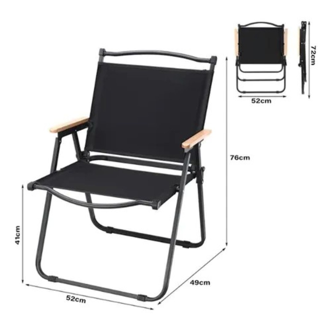 Su estructura de metal reforzado garantiza estabilidad y durabilidad, ideal para uso diario o al aire libre. La lona es resistente y confortable, brindando un buen soporte al cuerpo. Incorpora apoyabrazos de madera que aportan un toque elegante y mayor comodidad. Su sistema plegable permite guardarla y transportarla fácilmente, ocupando poco espacio.