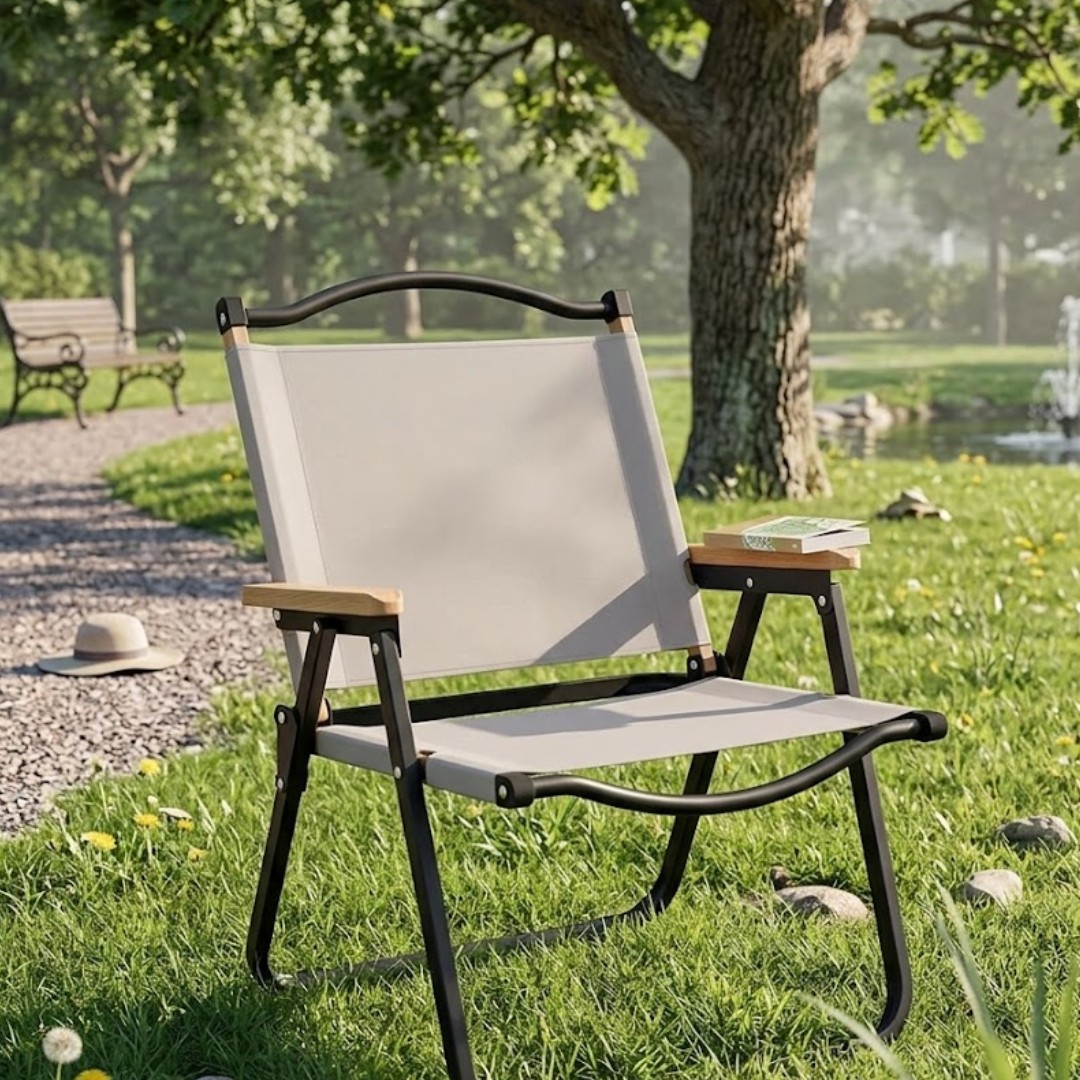 Esta silla plegable de lona combina resistencia y comodidad en un diseño práctico y funcional.