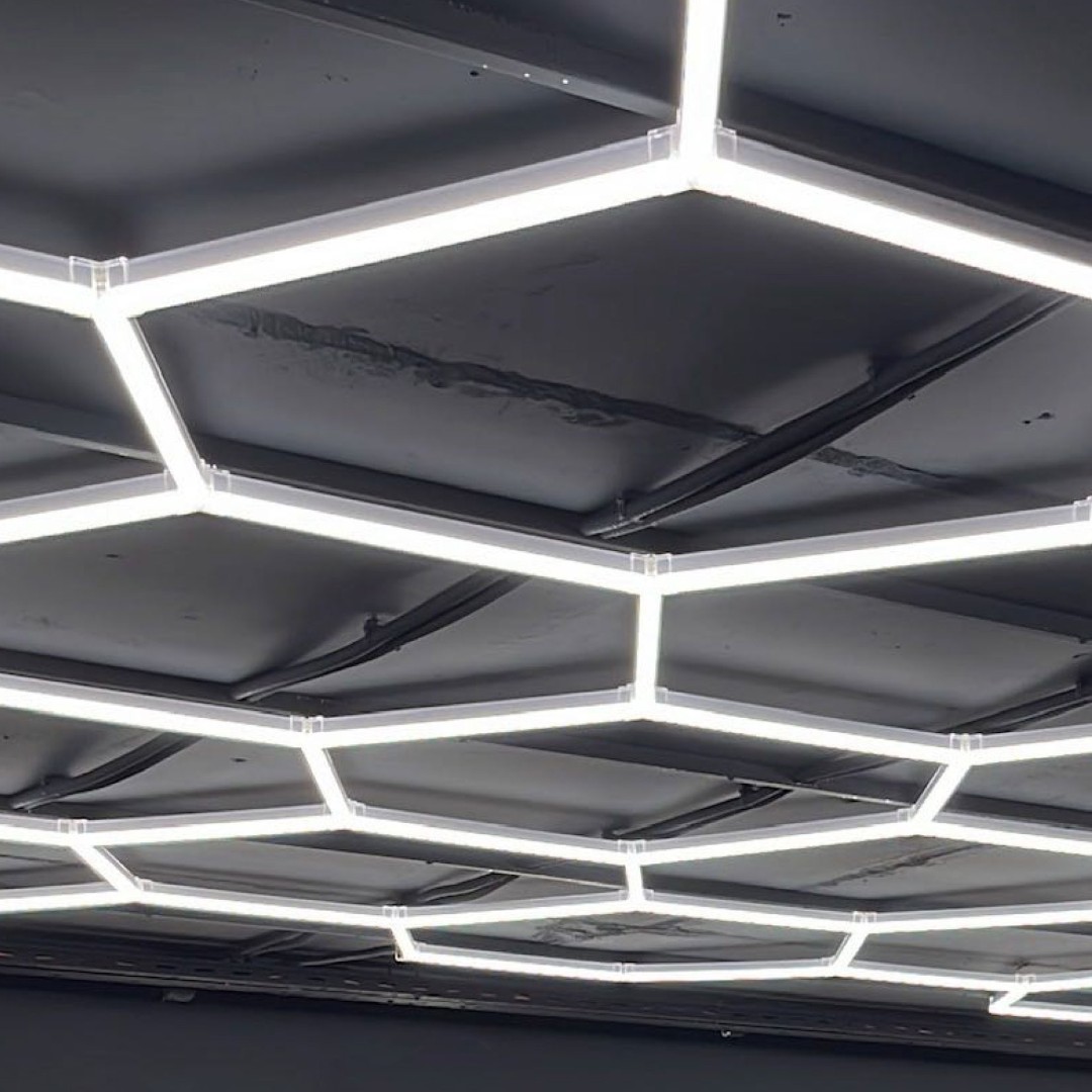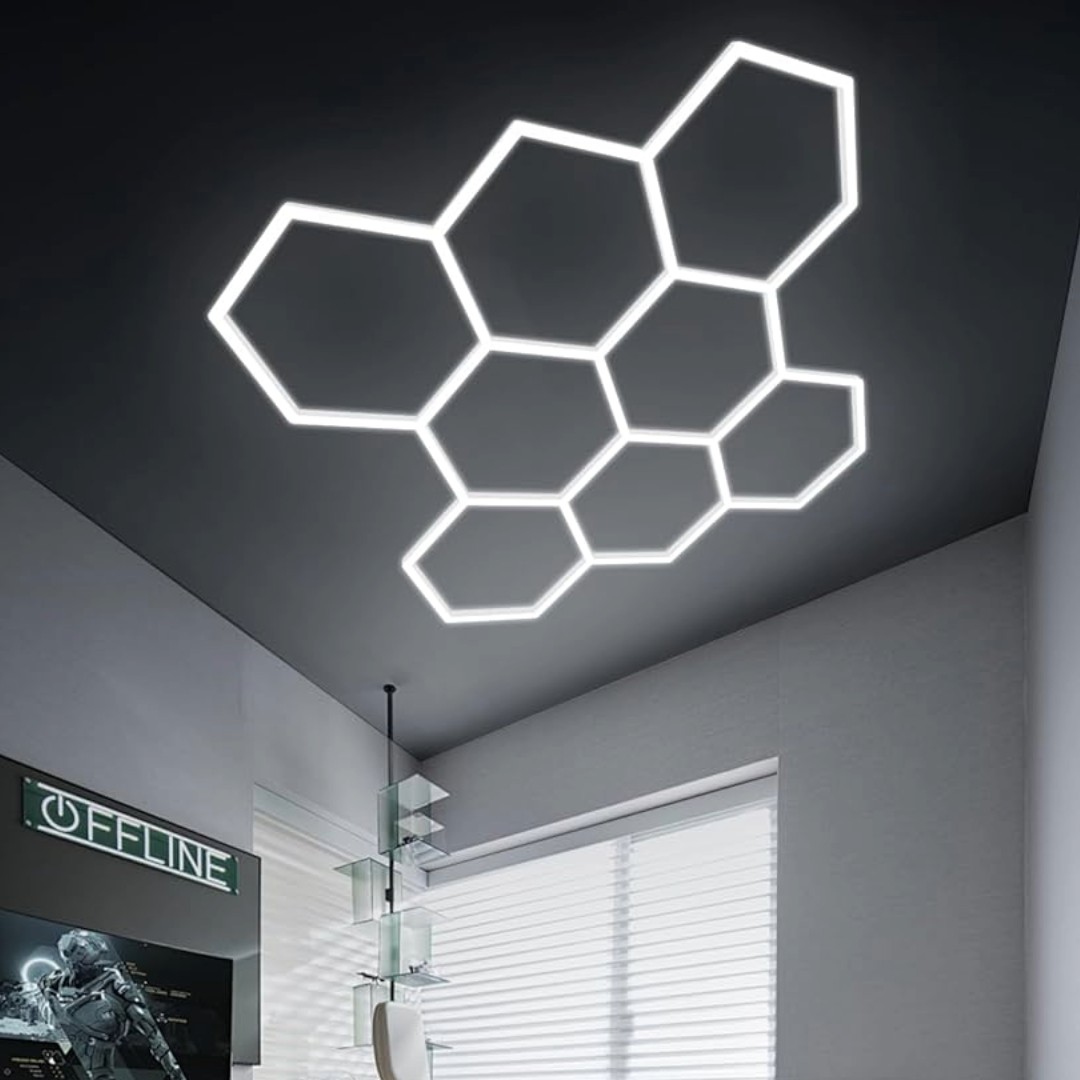 El módulo de luces LED hexagonales x5 es una solución moderna y llamativa para iluminar y decorar espacios con un estilo profesional. Con una estructura que forma un diseño geométrico de 2,0 m × 2,1 m, ofrece una iluminación potente y uniforme ideal para talleres, garajes, estudios, locales comerciales o espacios de exhibición. Su diseño modular permite una instalación práctica, aportando un aspecto moderno y tecnológico al ambiente. Además, la tecnología LED garantiza bajo consumo energético, larga vida útil y excelente rendimiento lumínico.