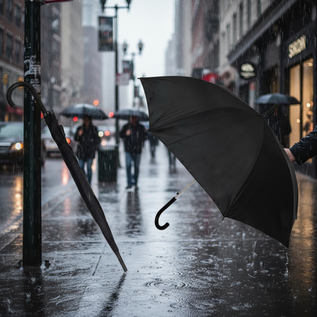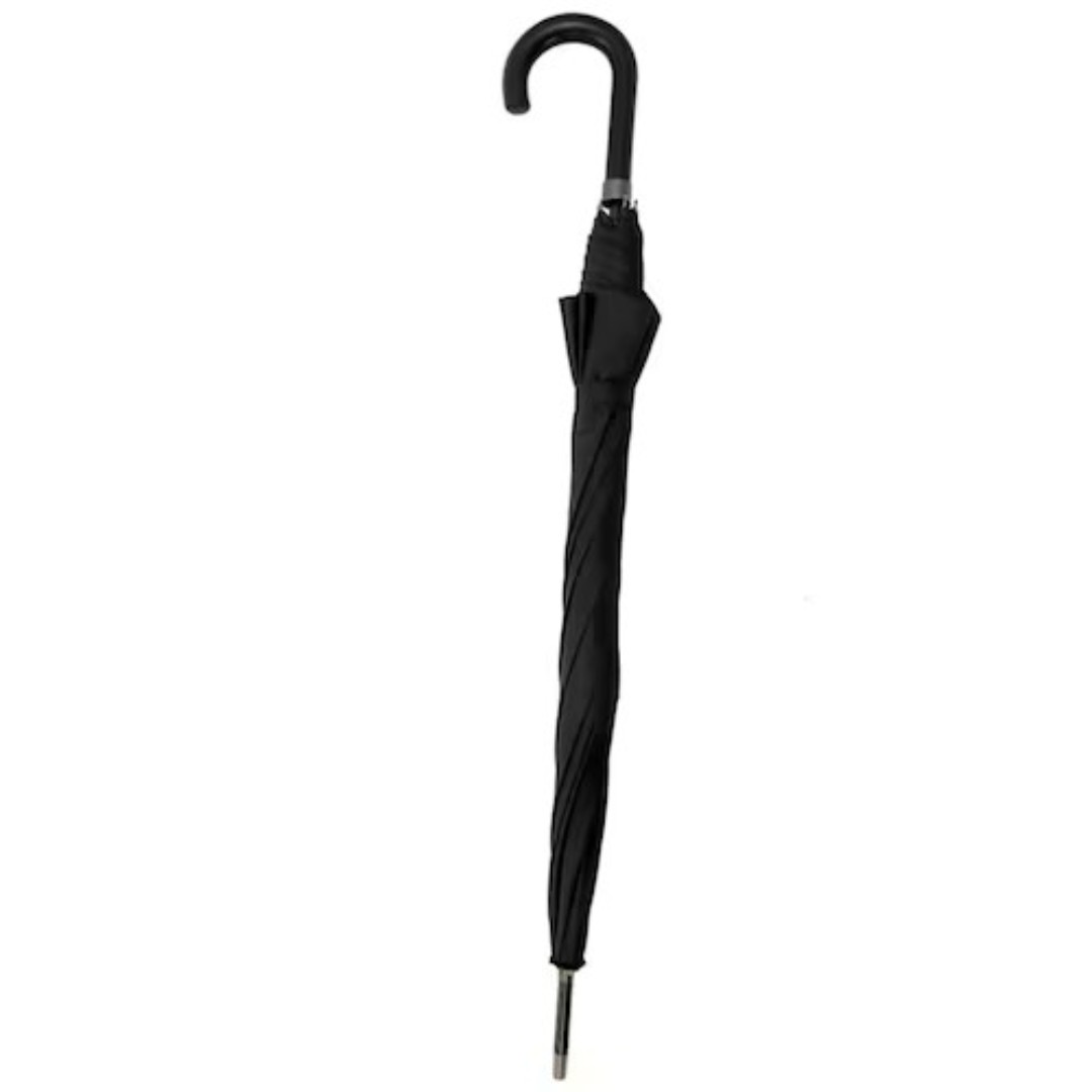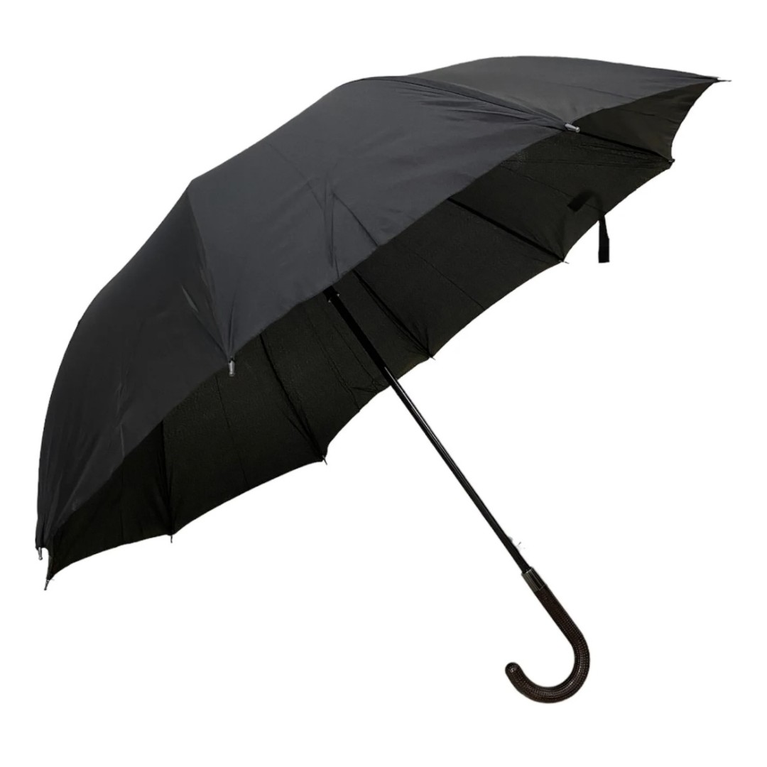 Este paraguas combina elegancia clásica y funcionalidad moderna. Con un diseño de tela lisa en color negro y una estructura de 8 gajos, ofrece una cobertura amplia y resistente frente a la lluvia. Su sistema de apertura automática permite desplegarlo de forma rápida y práctica, ideal para días impredecibles. El mango curvo, con un acabado texturizado que imita cuero, no solo brinda un agarre cómodo sino también un toque de distinción. Con un largo total de 85 cm, es una opción confiable y sofisticada para quienes buscan protección sin renunciar al estilo.