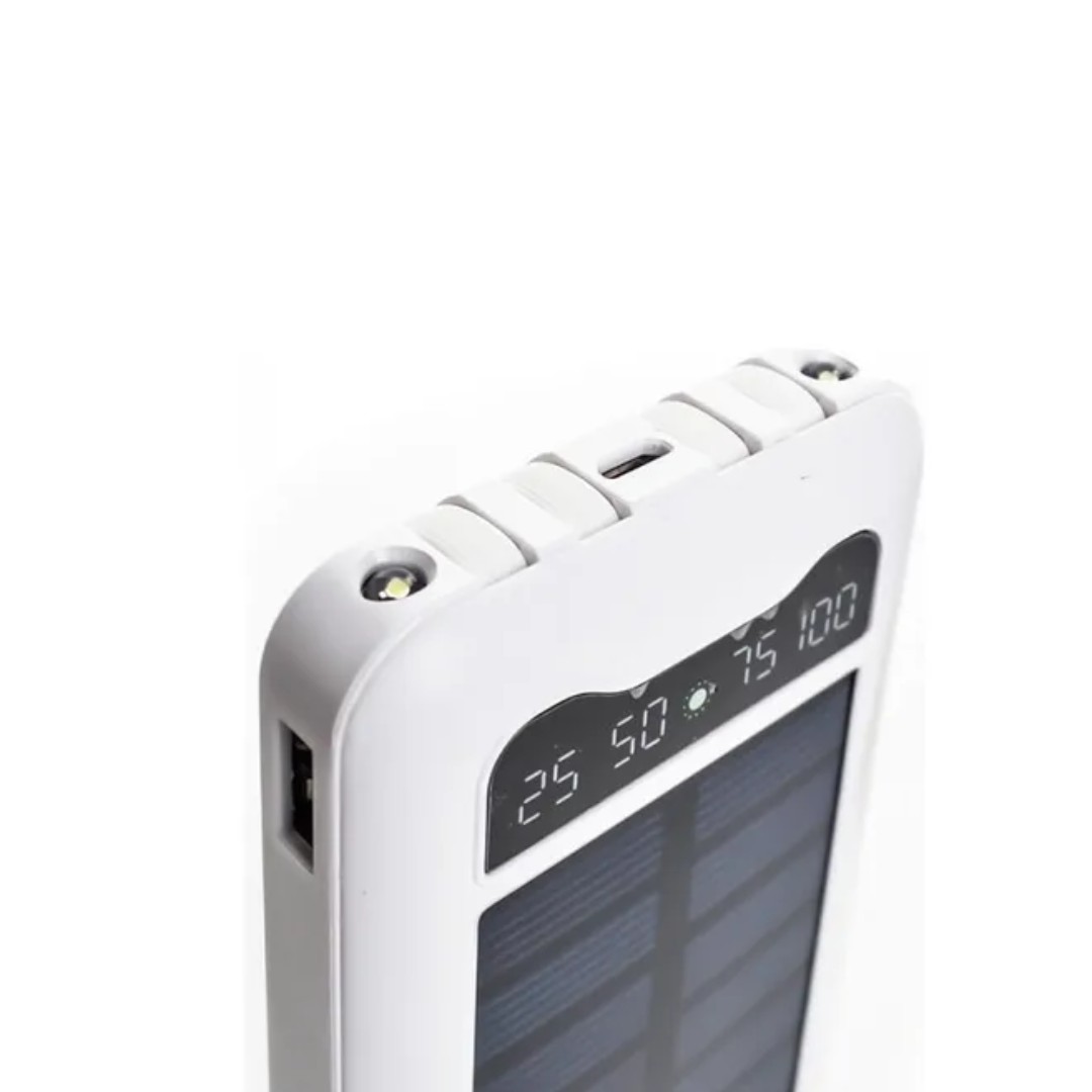 Mantené tus dispositivos siempre cargados con este powerbank con panel solar, ideal para viajes, camping o emergencias. Su batería de alta capacidad permite cargar celulares, tablets y otros dispositivos en cualquier momento. Incorpora panel solar que brinda una carga adicional aprovechando la luz del sol, perfecto para actividades al aire libre. Su diseño resistente lo hace apto para uso exigente, mientras que sus múltiples puertos ofrecen versatilidad. Una solución práctica, portátil y confiable para no quedarte sin energía.
