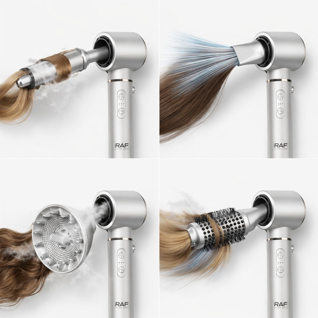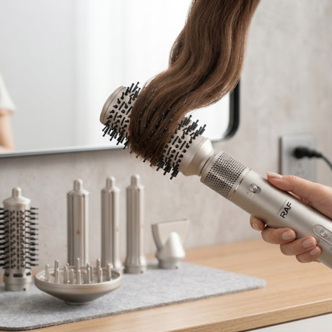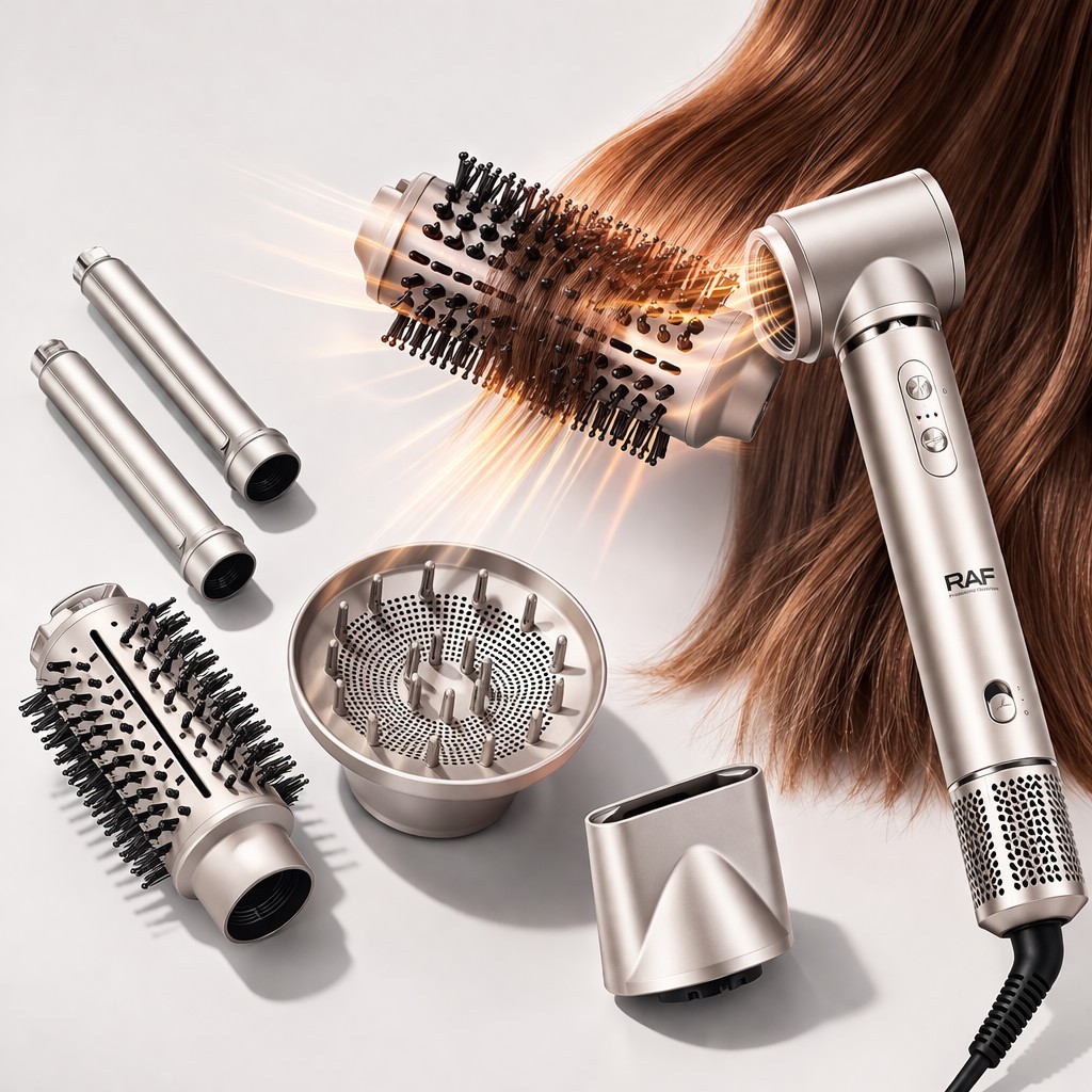 Lográ peinados de salón desde tu casa con este completo set RAF multifunción. Incluye un potente cepillo secador con accesorios intercambiables para alisar, dar volumen y crear ondas o rulos fácilmente. Su diseño práctico permite cambiar cabezales en segundos, adaptándose a distintos estilos. Ideal para todo tipo de cabello, reduce el frizz y mejora el acabado final. Perfecto para uso diario, combina tecnología y comodidad para resultados rápidos y profesionales sin salir de casa.