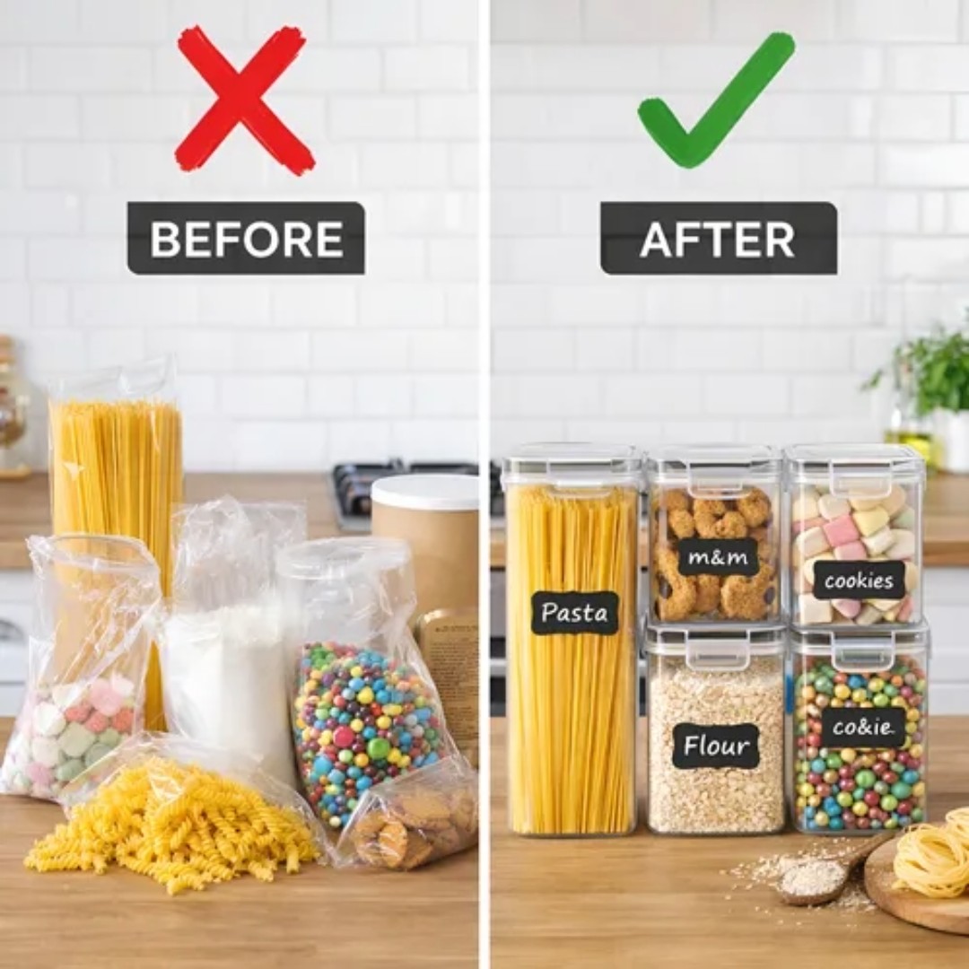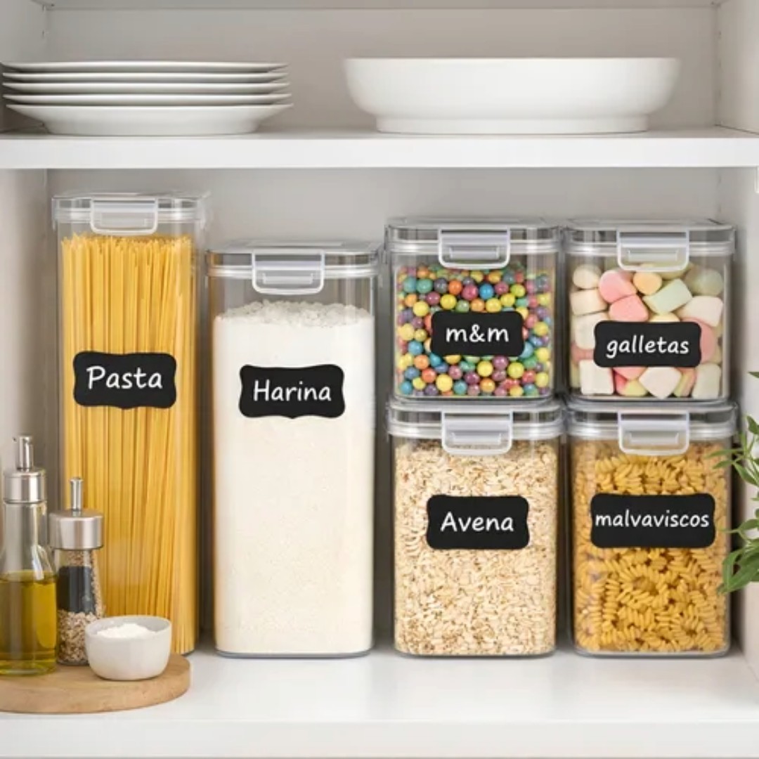 Mantené tus alimentos frescos, organizados y protegidos con este set de recipientes herméticos de alta calidad, ideal para optimizar el espacio en tu cocina y conservar mejor todo tipo de alimentos secos.