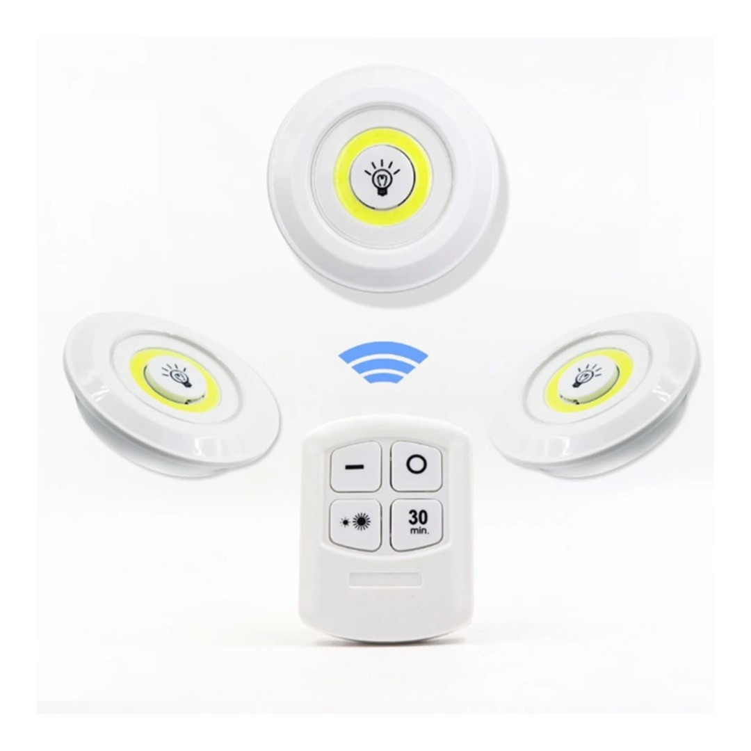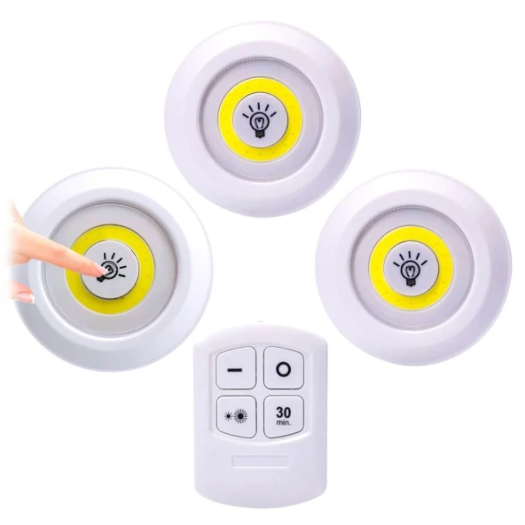 Este set de luces LED inalámbricas con control remoto es una solución práctica y moderna para iluminar distintos espacios del hogar sin necesidad de instalaciones complicadas. Incluye tres luces compactas que pueden colocarse fácilmente en paredes, muebles, armarios, cocinas o pasillos. Funcionan a batería y ofrecen una iluminación clara y eficiente, ideal para lugares donde no hay acceso directo a corriente eléctrica. El control remoto permite encender, apagar y ajustar la intensidad de la luz cómodamente a distancia, además de contar con función de temporizador. Su diseño discreto y fácil instalación las convierte en una opción versátil para mejorar la iluminación de cualquier ambiente.