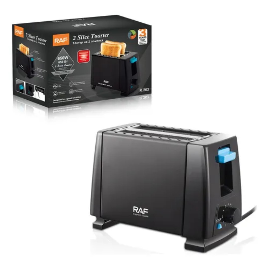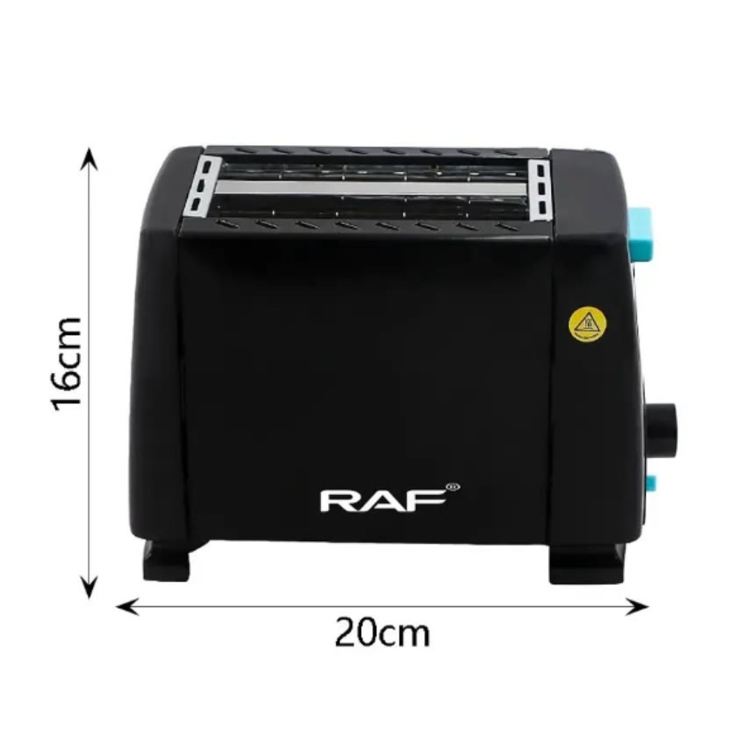 El Tostador RAF Negro combina practicidad, seguridad y un diseño moderno para que disfrutes de tus desayunos al máximo. Sus dos ranuras amplias con ajuste automático centran las rebanadas de pan sin importar el tamaño, garantizando un tostado uniforme en cada uso. Podés elegir entre 6 niveles de tostado, adaptando el resultado a tu gusto, mientras que el botón Stop-Eject te brinda control total para detener el proceso en cualquier momento.
