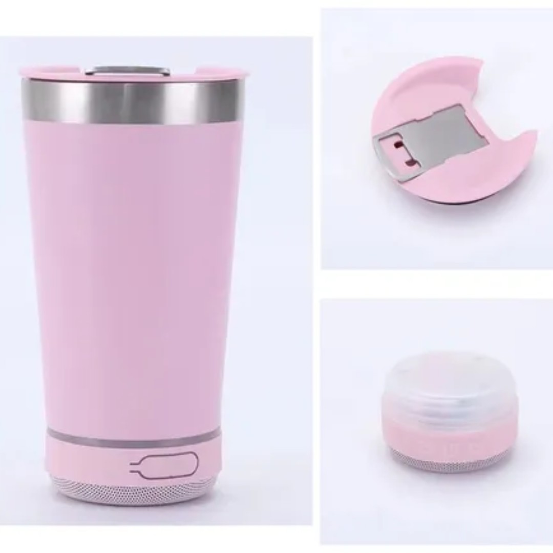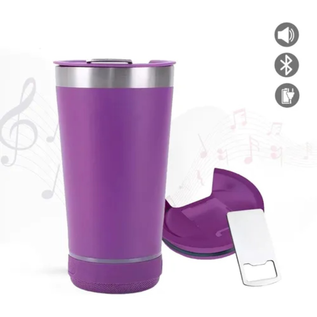 Incluye tapa, es apto para lavavajillas y tiene un práctico destapador incorporado. Su parlante Bluetooth se recarga fácilmente mediante cable USB y te permite disfrutar de tu música directamente desde el celular. Con este vaso, cada sorbo, cada canción y cada momento se viven con más estilo y comodidad.