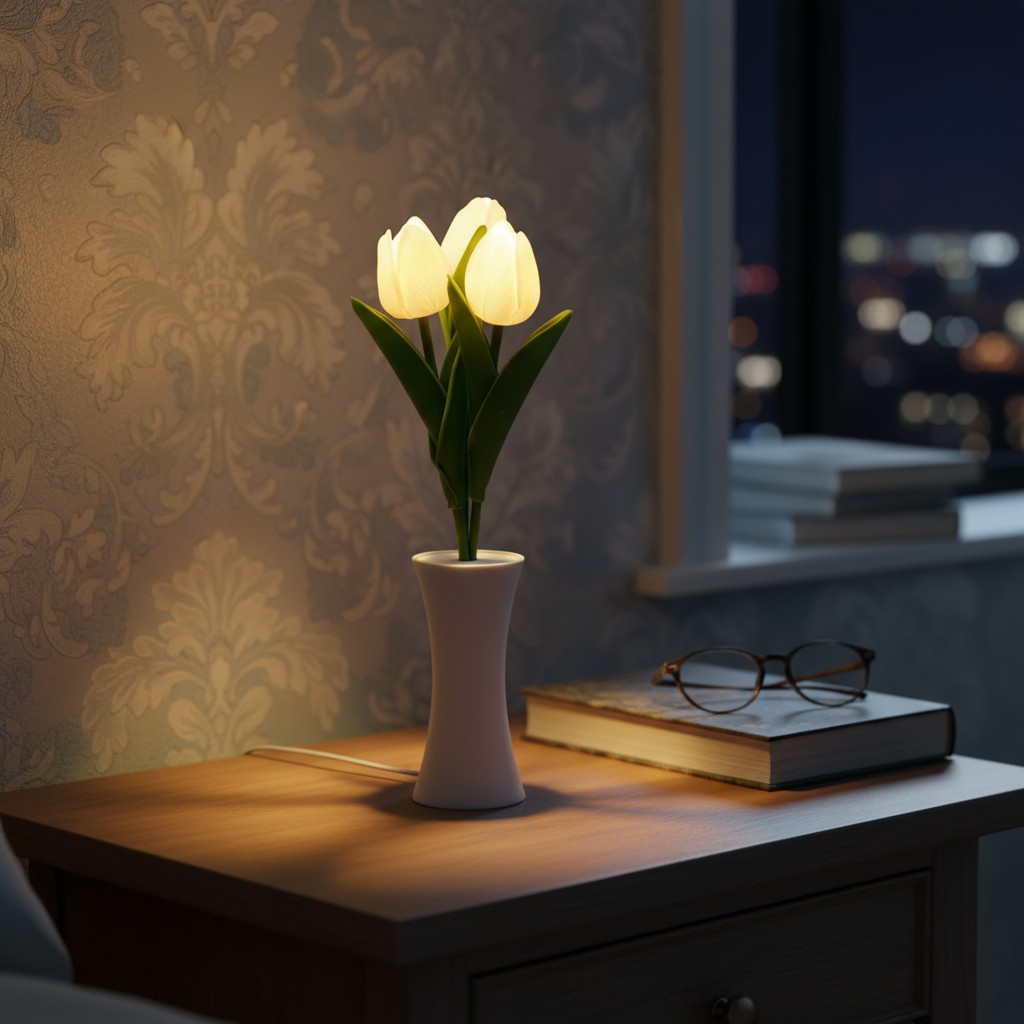 Ilumina y decora tus espacios con nuestra encantadora veladora de tulipanes, diseñada para aportar calidez y armonía a tu hogar. Su estilo elegante y delicado la convierte en una pieza ideal para dormitorios, salas o cualquier rincón donde desees crear un ambiente especial. Funciona a pilas, ofreciendo la comodidad de una luz suave y constante sin necesidad de cables, lo que te permite ubicarla donde prefieras. Con aproximadamente 30 cm de altura, esta vela decorativa no solo ilumina, sino que también realza la belleza del entorno, convirtiéndose en un detalle único que transmite paz y bienestar en cada espacio.